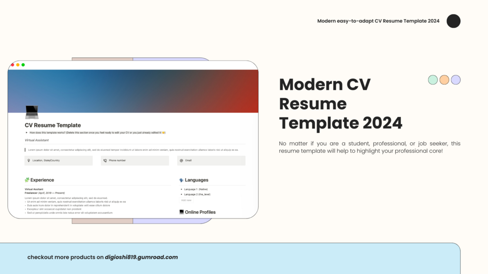 Free Easy-to-edit Notion Resume Template. Save Time While Building the New Version of Your CV and Boost Your Job Hunting!