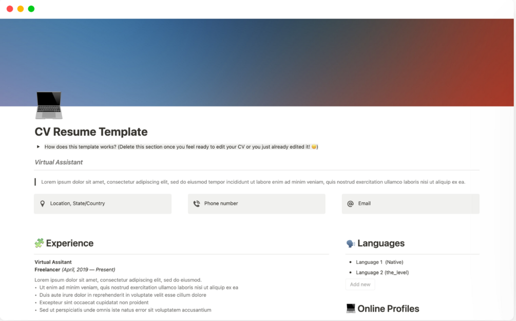 Notion CV Resume Template - Free easy-to-adapt Notion Template